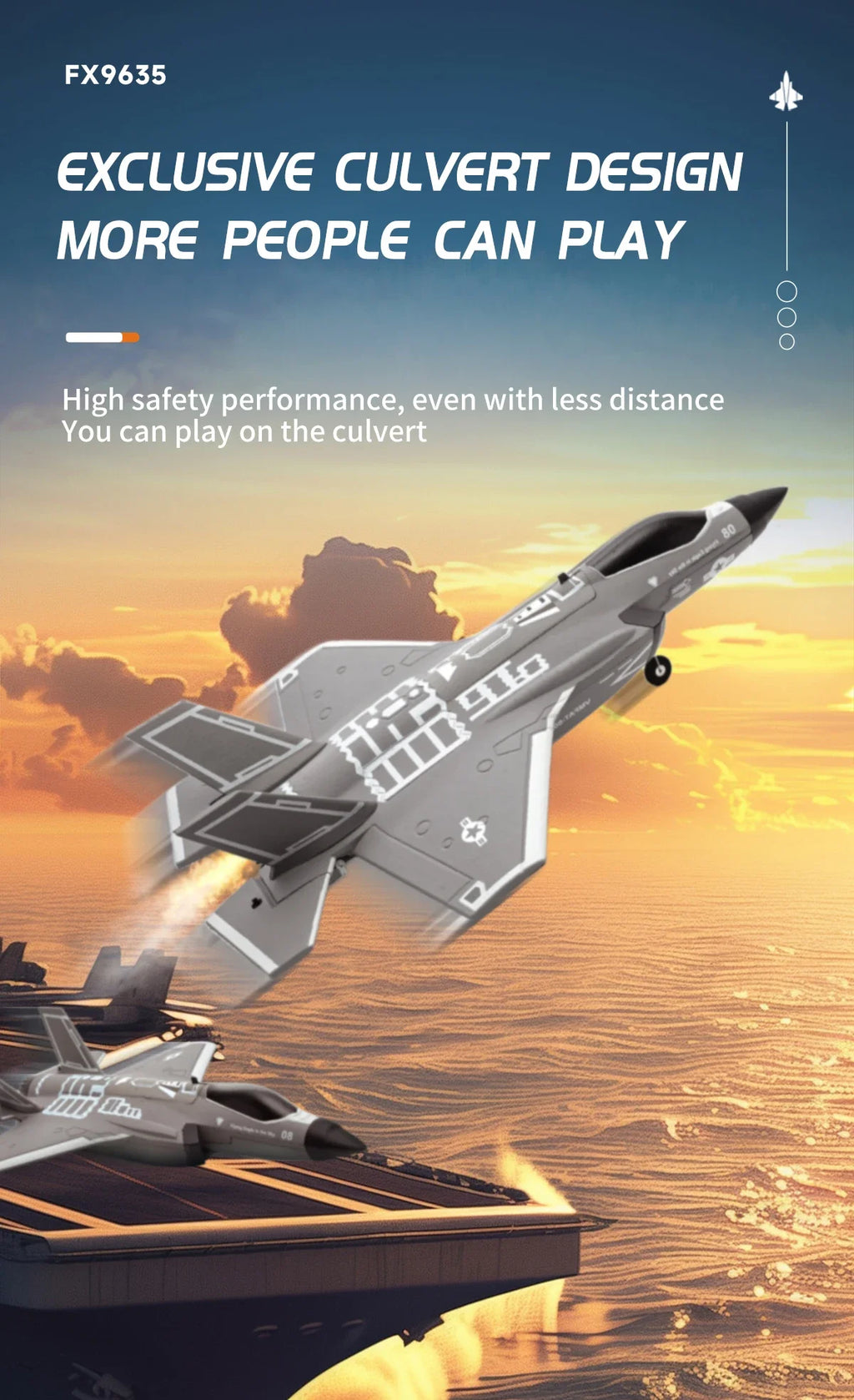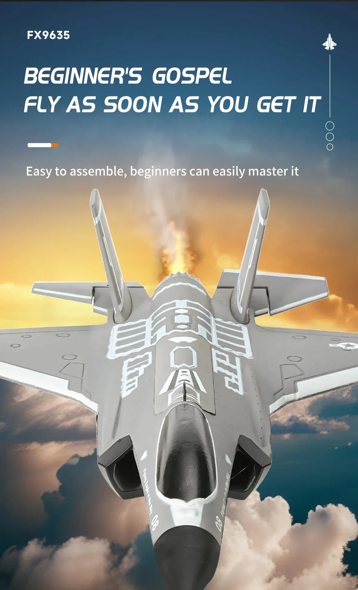 O Avião RC F35 FX9635 é um impressionante jato de controle remoto projetado para oferecer uma experiência de voo realista e emocionante. Equipado com tecnologia 2.4G de 4 can, proporcion