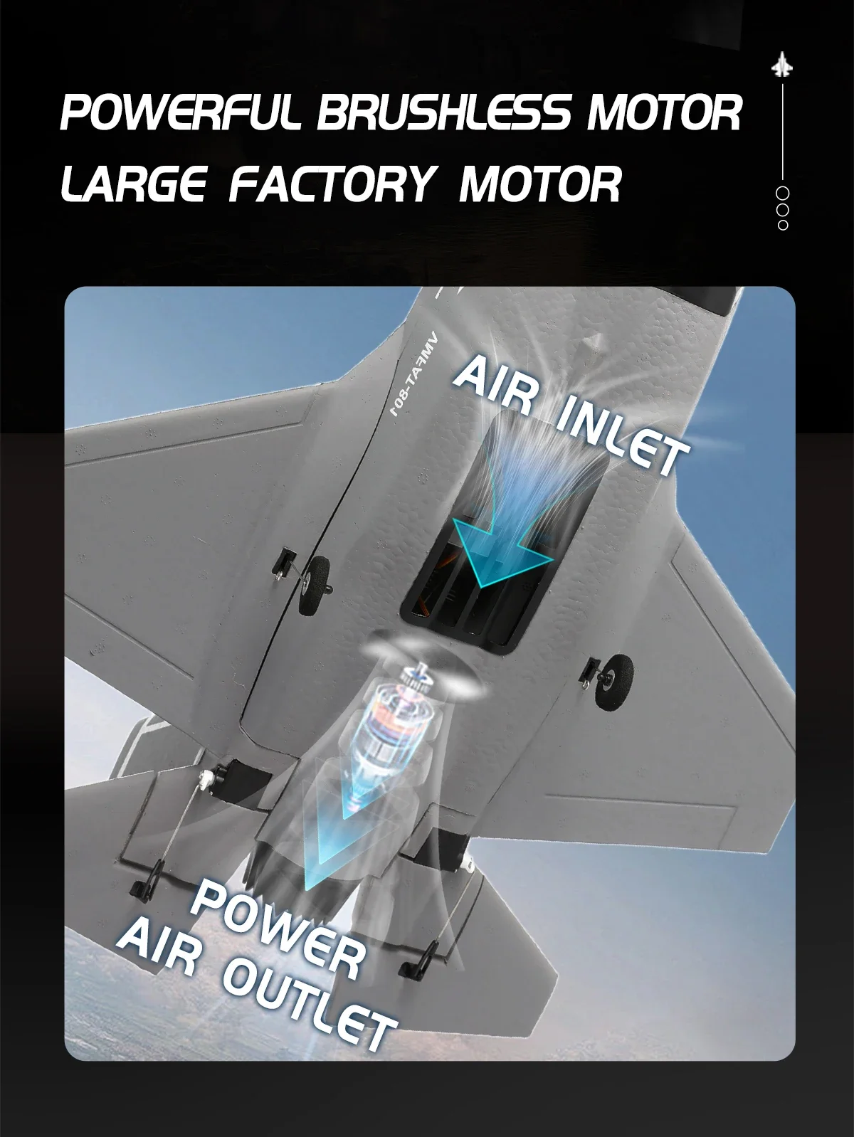 Seu motor brushless (sem escovas) garante mais potência, eficiência e durabilidade, além de um desempenho superior durante o voo. O design inspirado no famoso caça F35 traz um visual moderno e detalhado, tornando o modelo ainda mais atrativo para entusiastas e colecionadores.